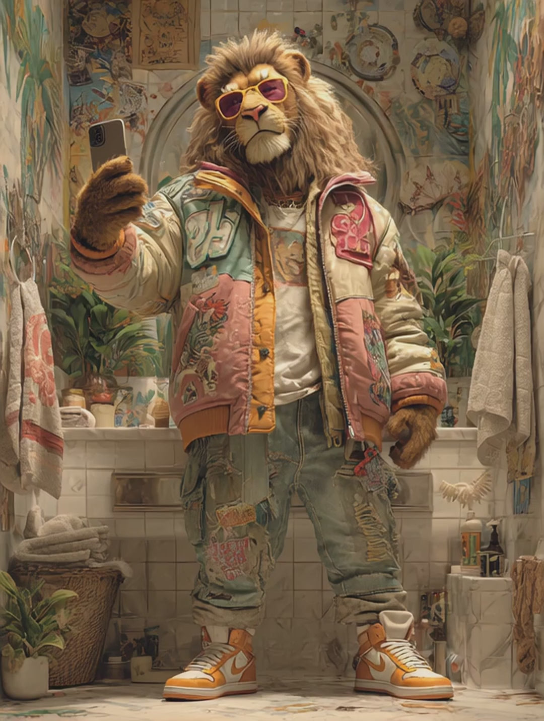 Add humor and urban jungle vibes to your home with this bold Lion Wall Art. Featuring a colorful jungle king in stylish streetwear, this design is perfect for bathrooms, nurseries, or modern interiors.