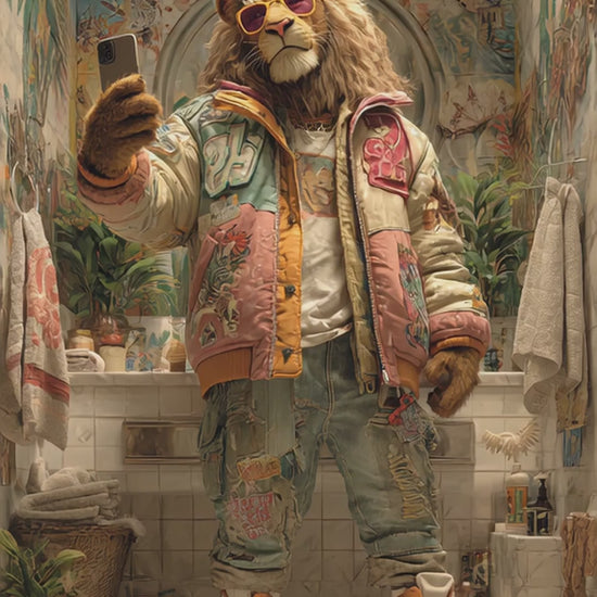 Bring humor and urban jungle vibes into your home with this bold Lion Poster. Featuring a colorful jungle king in stylish streetwear, this artwork is a perfect fit for bathrooms, nurseries, or modern interiors.